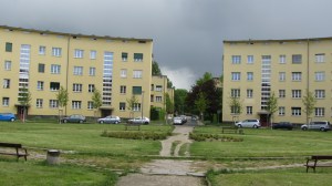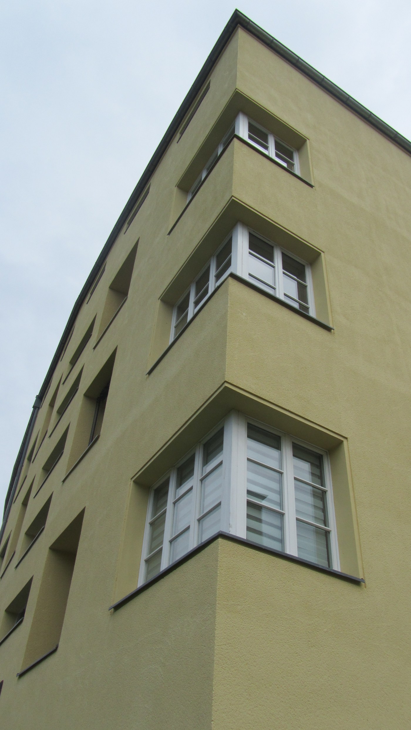 The circular plan clearly breaks with the traditional urban street layout of German cities, and was intended to help focus the community inwards (in a positive way). No doubt inspired by its circular shape and location, the names of its various components are taken from Wagner’s Ring of the Nibelung. The central space (Siegfriedplatz) originally held a swimming pool but is now left exposed and rather forlorn, its scrubby grass an anti-climax, a lost opportunity.