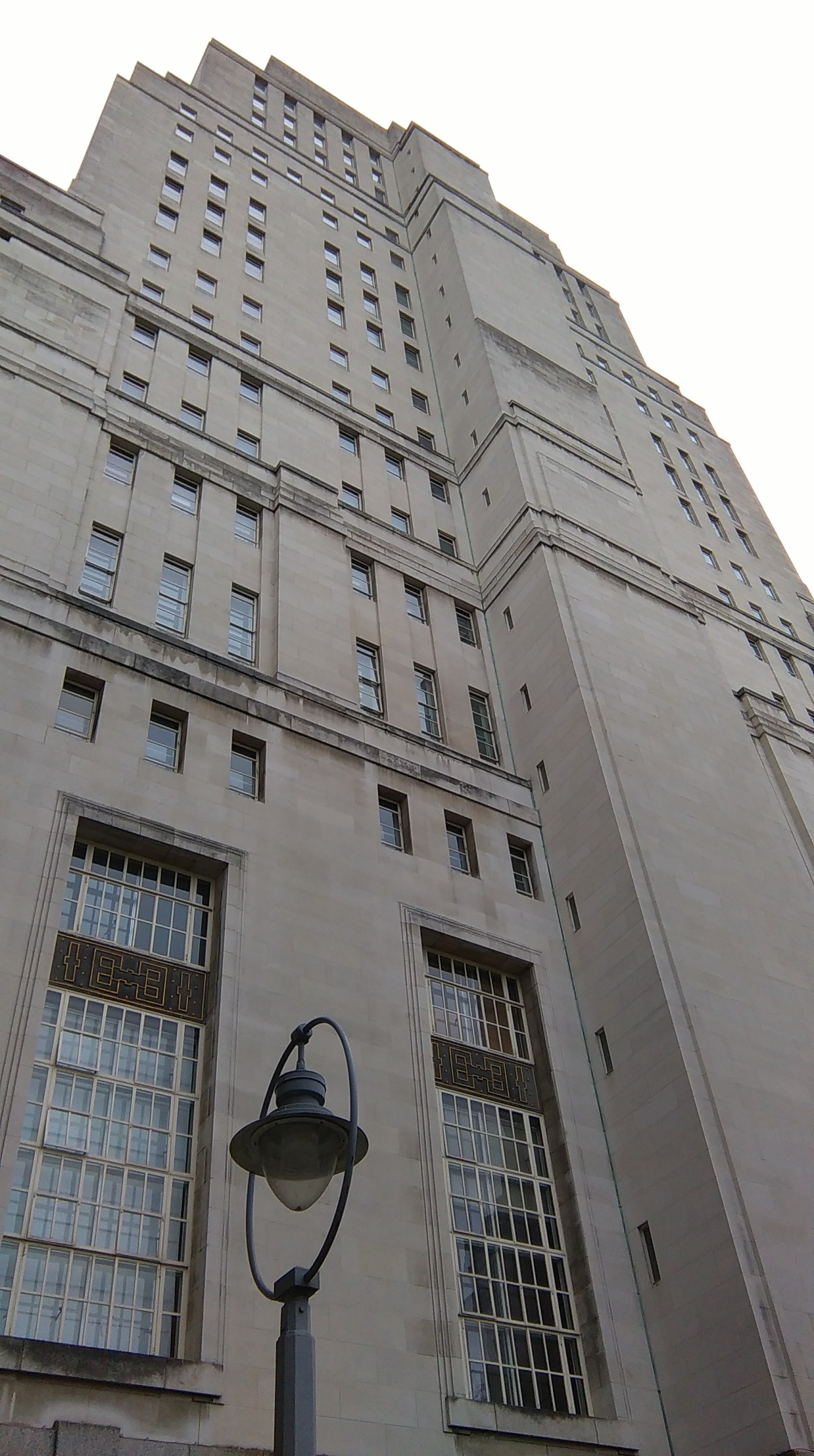 Built between 1932 and 1937 Senate House dominates the streets of western Bloomsbury. In contract to Charles Holden’s London Underground stations of the same period it is classical in tone and massive in scale, and more akin to his earlier work for the London Electric Railway at 55 Broadway (1929).